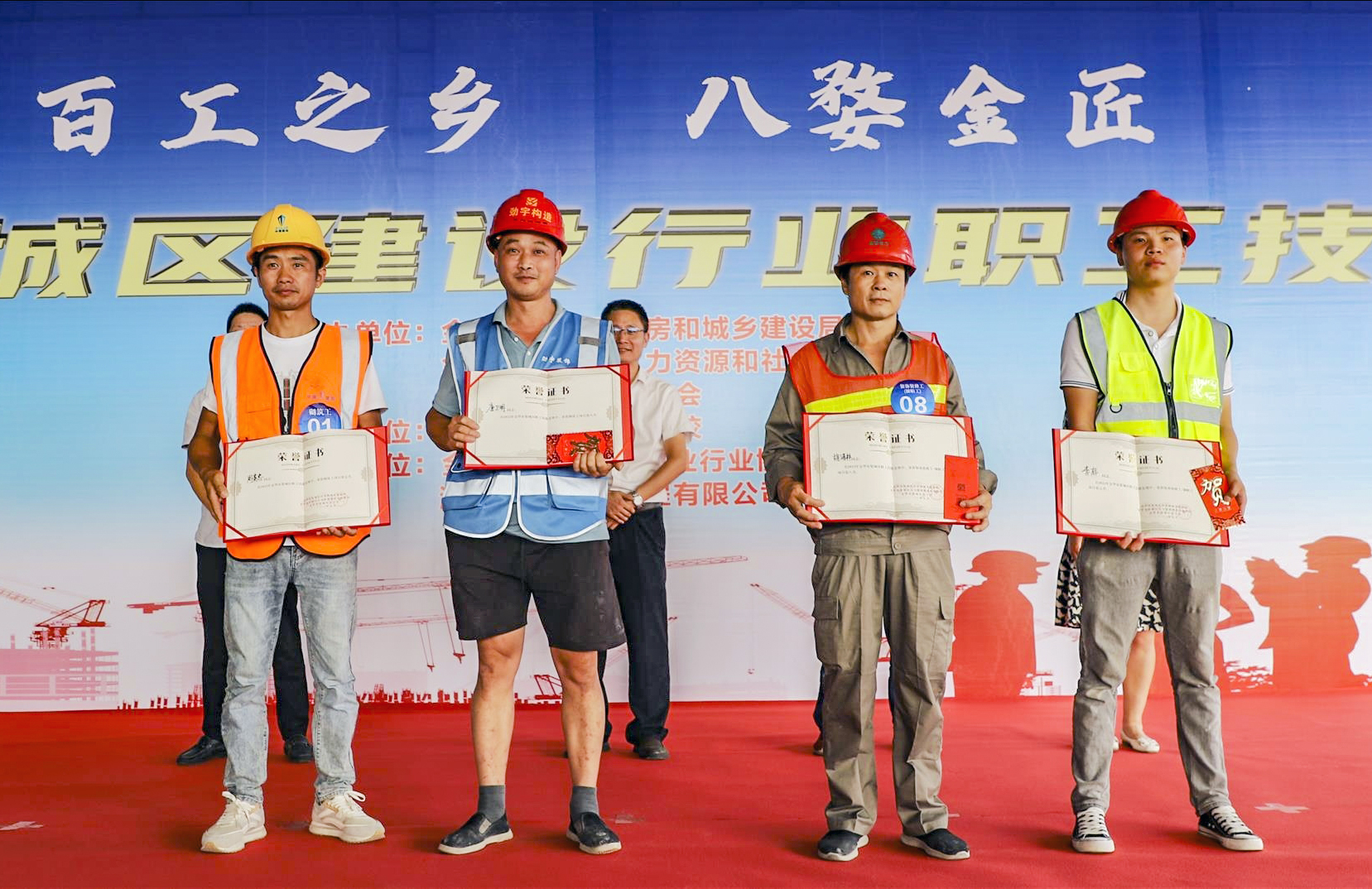 经过长达5小时的角逐,砌筑工、装饰镶贴工两个职业工种的竞赛分别评选出一至八名获奖选手及优秀奖获得者,浙江盛合建设工程有限公司获最佳组织奖。除了奖金,获得竞赛第一名选手将由区劳动竞赛委员会授予“婺城区技术标兵”荣誉称号,获得第二至三名的选手,由区劳动竞赛委员会授予“婺城区技术能手”荣誉称号,其他参赛选手理论和技能操作两项成绩均合格者,核发高级工证书。
