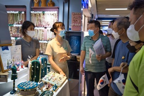“老板娘,好久不见,请问这个产品还有其它颜色吗?”9月16日上午10时30分许,在义乌国际商贸城,来自韩国的采购商李松鏞正在采购日用百货、仿真花等产品。当天,共有40余名韩国包机客商抵达义乌国际商贸城,他们经过简单的参观后,立即开启线下采购。