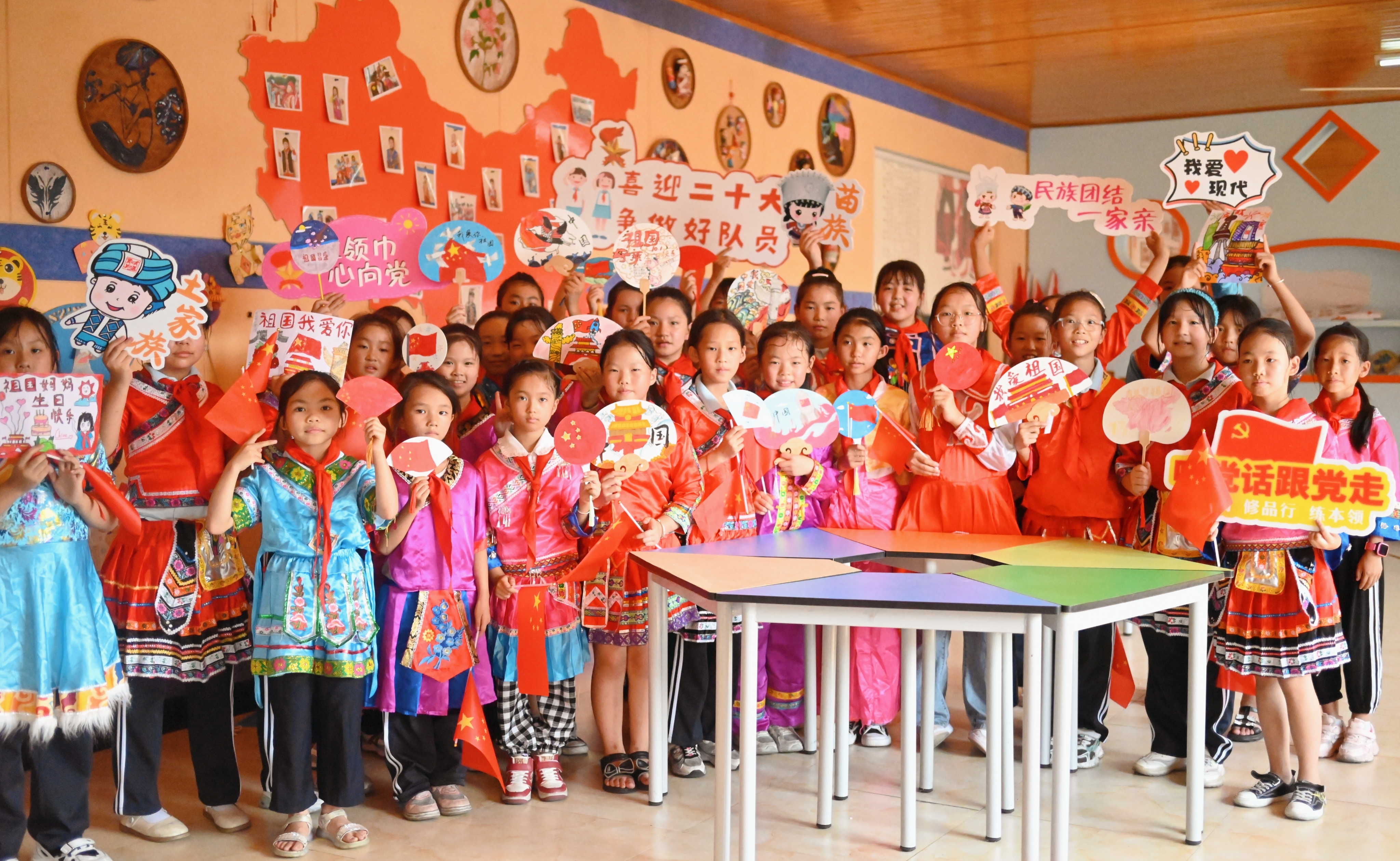 少数民族孩学生们以智慧为笔,以汗水为墨,灵巧的双手舞动着画笔,把心中对祖国的热爱和祝福描绘出来。一颗颗童心充满着对祖国的深情,一幅幅画卷诉说着对祖国妈妈的美好祝福。