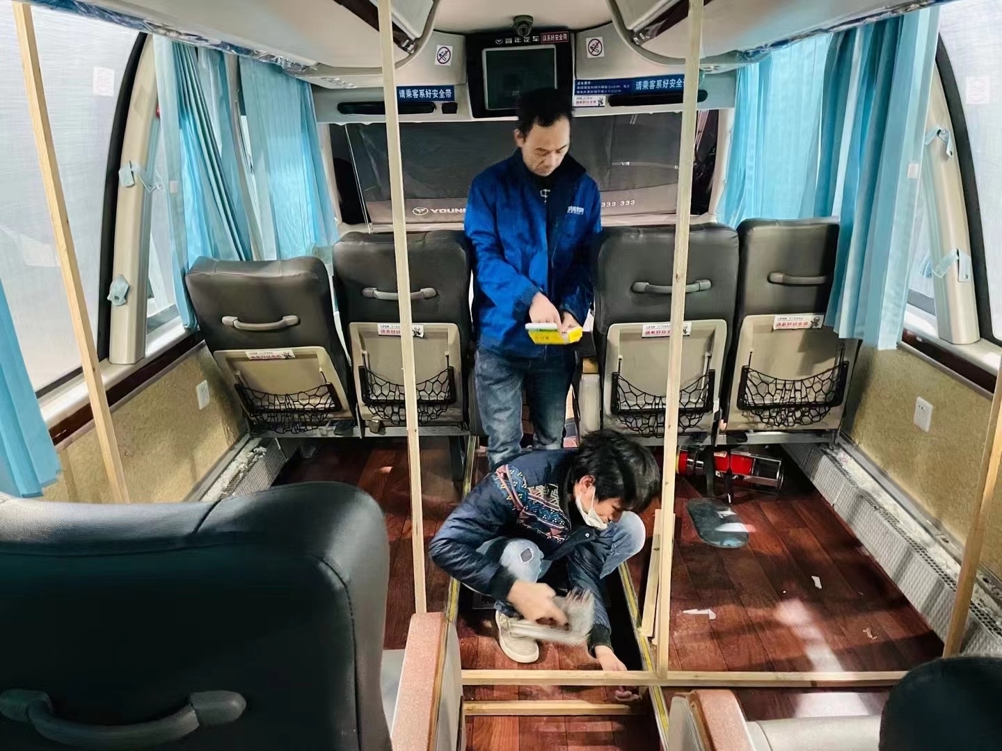 为满足疫情转运工作需要,根据运输工具防控隔离要求,明家装饰10月4日早上8点接到改造疫情保障车任务。“我们第一时间响应,在公司工作群内发布信息,迅速召集国庆在家休息的工班师傅,半小时内组织了10组工班到达公交东站。”明家装饰总经理爱心车队队长卢明军说,当天完成改造防疫车辆8台,5日继续加班加点要完成4台大巴车、20台小车的改造任务。