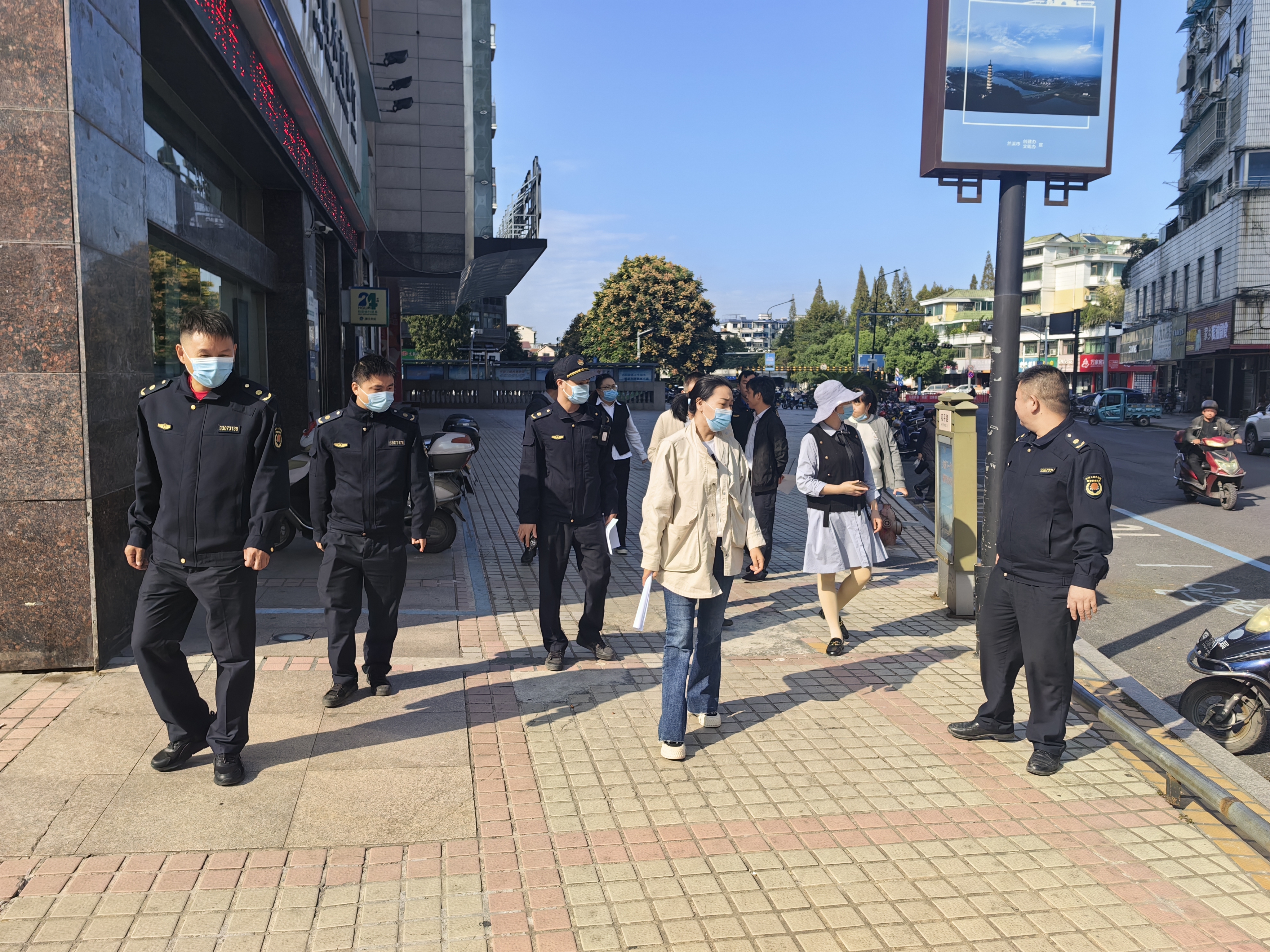 为进一步强化商圈凝聚力,提升治理水平,今年,兰溪市开展市区商圈“一圈六方”长效管理,通过六方协作,做精做细商圈单位责任落实,树立“一盘棋”思想,通过推进商圈综合管理工作,实现“共管、共治、共享”新格局。其中,“一圈”指兰溪各核心商圈,包括嘉泰新时代商圈、宝龙广场商圈、中央广场商圈等;“六方”指行政执法、市场监管、公安、建设及城投、商务、属地街道等部门和单位。