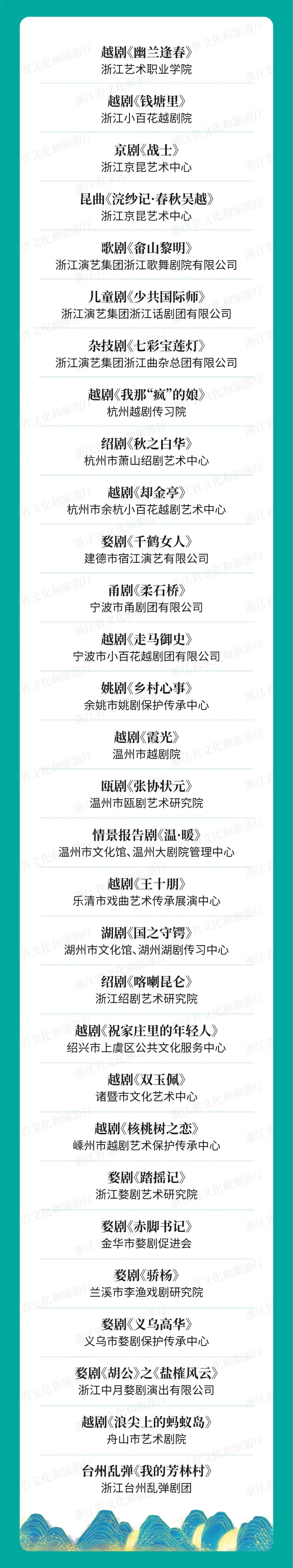 本届浙江省戏剧节以“戏聚金华传经典,活力浙江唱未来”为主题,经各地各单位申报及专家评审论证,共有30台剧目入选终评,角逐舞台。