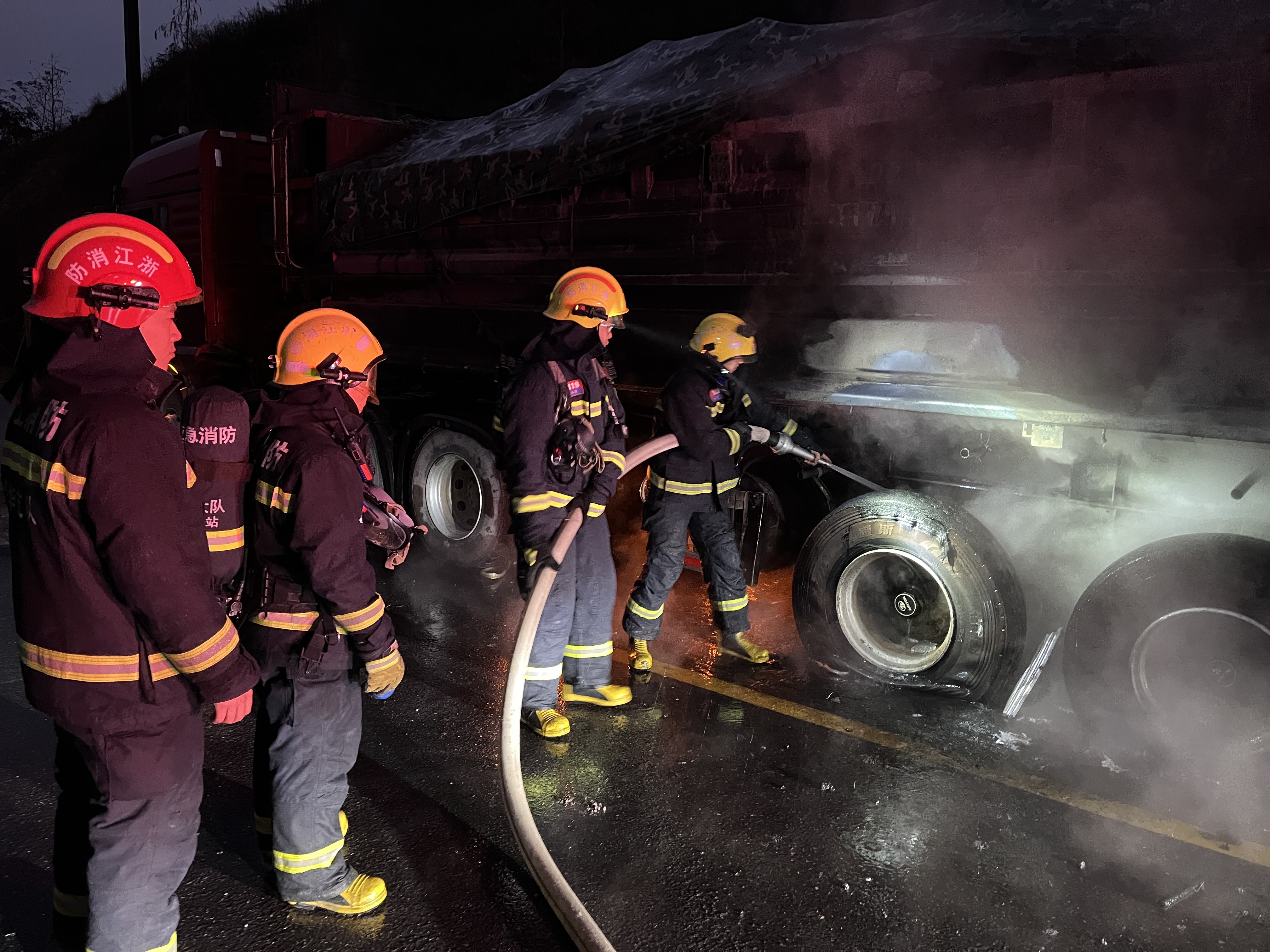 无独有偶,12月7日17时许,兰溪市官塘附近高速路上一货车着火,兰溪市消防救援大队立即调派拥军路消防救援站12名消防救援人员赶往现场开展灭火。