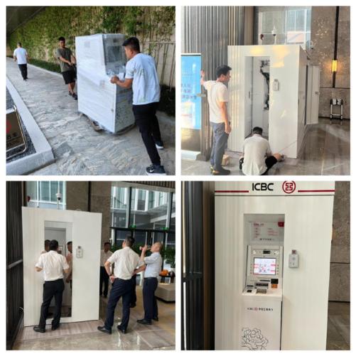 二进场施工。因自助服务区设在酒店大堂,为不影响酒店方正常营业,施工时间服从酒店方要求安排在晚上,施工期间严格保护酒店地、墙、厅等设施设备,保证不损坏、不破坏。在自助设备、加钞舱进场后,与各个供应商协调配合、互通有无,加班加点一次性完成设备、加钞舱、监控设备、110报警等施工。