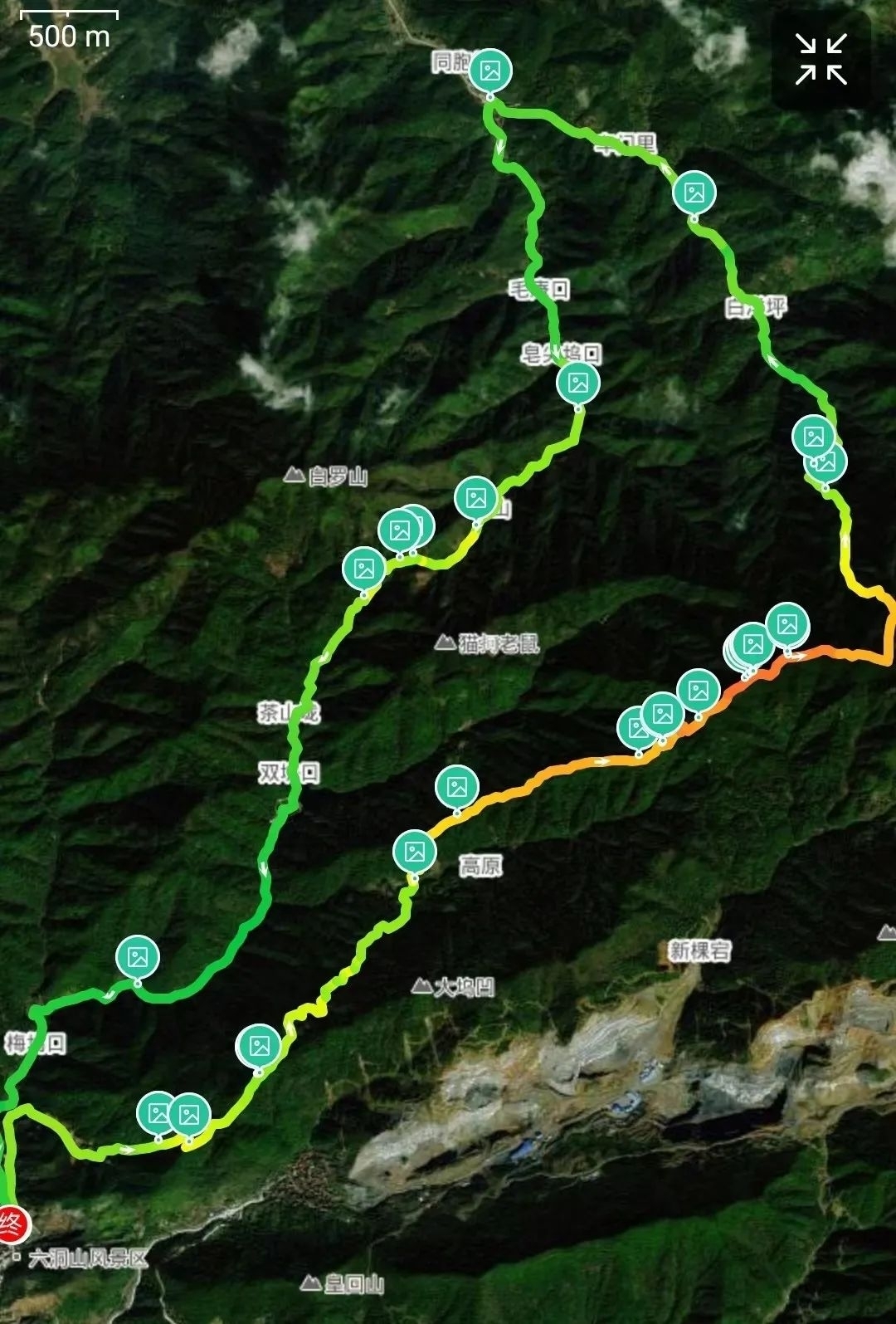 徒步毅行活动线路为:六洞山风景区售票处广场——栖真寺——环浙步道霞客古道——高眉古村绿道——灵洞绿道——六洞山风景区售票处广场。该线路共8公里,累计上升351米,累计下降365米,关门时间为3小时。
