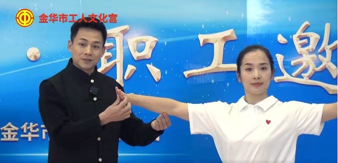 这套婺韵十足的广播体操,引起了市总工会工人文化宫的注意。在他们看来,这套广播体操将传统文化与全民健身融合在一起,适合多个群体练习。市工人文化宫积极对接,浙江婺剧艺术研究院全力支持,青年演员周宏伟、何萧乐担任示范老师,“梅花奖”得主、浙江省万人计划青年拔尖人才楼胜主讲,录制了线上教程。“这个就是云手,拉山膀,婺剧里经常会出现,拉山膀的时候,手臂要保持一定的弧度,不能太直,手指尖要使劲,虎口要张开……”视频里,楼胜讲得通俗细腻,习练者能感受到婺剧身段的神韵,领略广播体操里的文化底蕴。