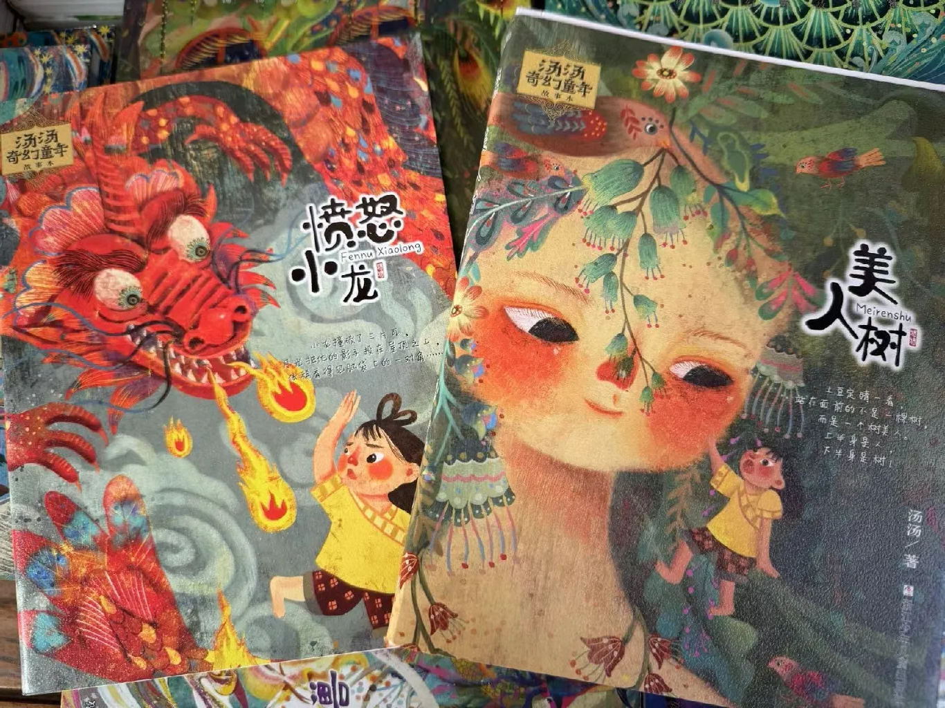 其中,《美人树》和《愤怒小龙》这两本书很受孩子的喜爱。“《美人树》的灵感来源是有一次回老家,发现村口的一棵枫香树倒了,那是我小时候爬过的树。《愤怒小龙》则是爬山时遇见一块大石头,上面隐约可见一些黝黑的花纹,莫名觉得里边住着一个什么生物。”汤汤说,她的灵感总是来自这些平常的东西,其实土豆身上有自己小时候的影子,土豆住的南霞村,也有她小时候住的南缸窑村的痕迹。“从平常生活里写出奇妙童话,而不是从神奇里寻找神奇。”这是汤汤一直在努力做的事情。
