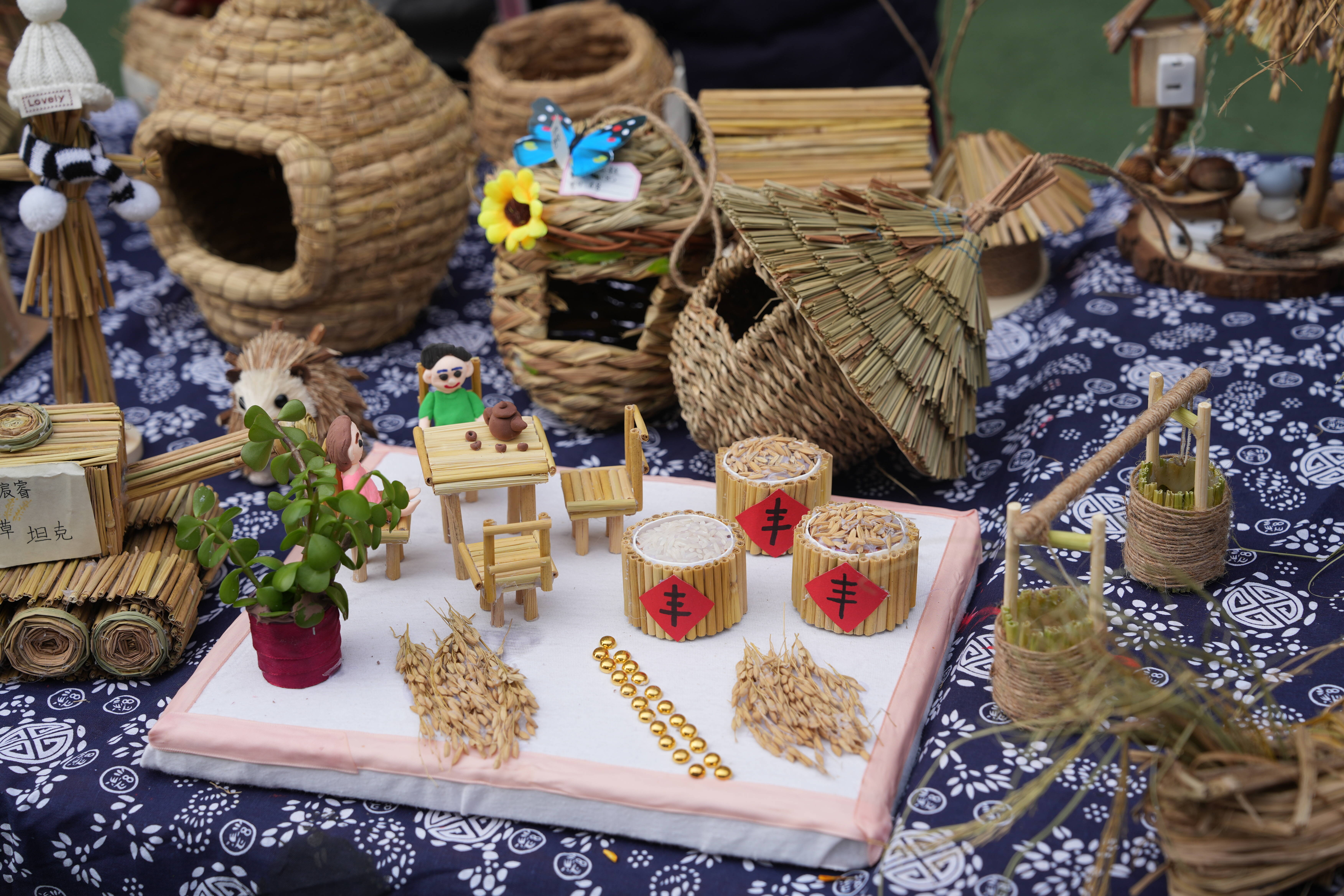 走进四年级的学农展示活动现场,四(一)班的陈泽曦、傅梓芯身着整洁校服,正在为在场人员讲述袁隆平的“禾下乘凉梦”和稻谷的发展历史。一旁,是该年级学生精心绘制的各种农学相关的手抄报。“我要一碗蛋炒饭。”“我也要。”一阵嘈杂声中,只见四(五)班的卢子昊化身 “小大厨”,在大展身手,用稻米精心炒制的蛋炒饭香气四溢,引得不少同学纷纷围拢过来。在手工制作展示区,同样也摆满了学生们亲手制作的与农学相关的作品。
