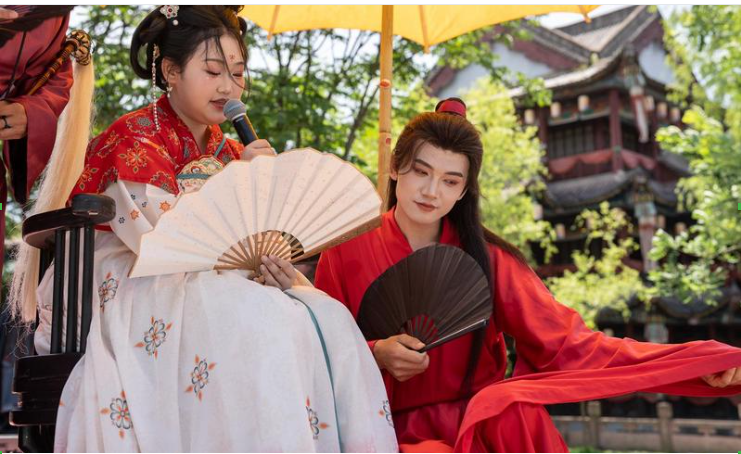 到了清明假期和“五一”小长假,横店影视城则推出“横店疯狂片场”2.0版,升级推出霸总片场、戏精片场、斗舞片场、科考片场、武侠片场、名画片场、烟火人间片场、宋潮摇滚片场、小戏骨片场等九大片场,游客可以随地大小演,300余名NPC随时在线接戏。
