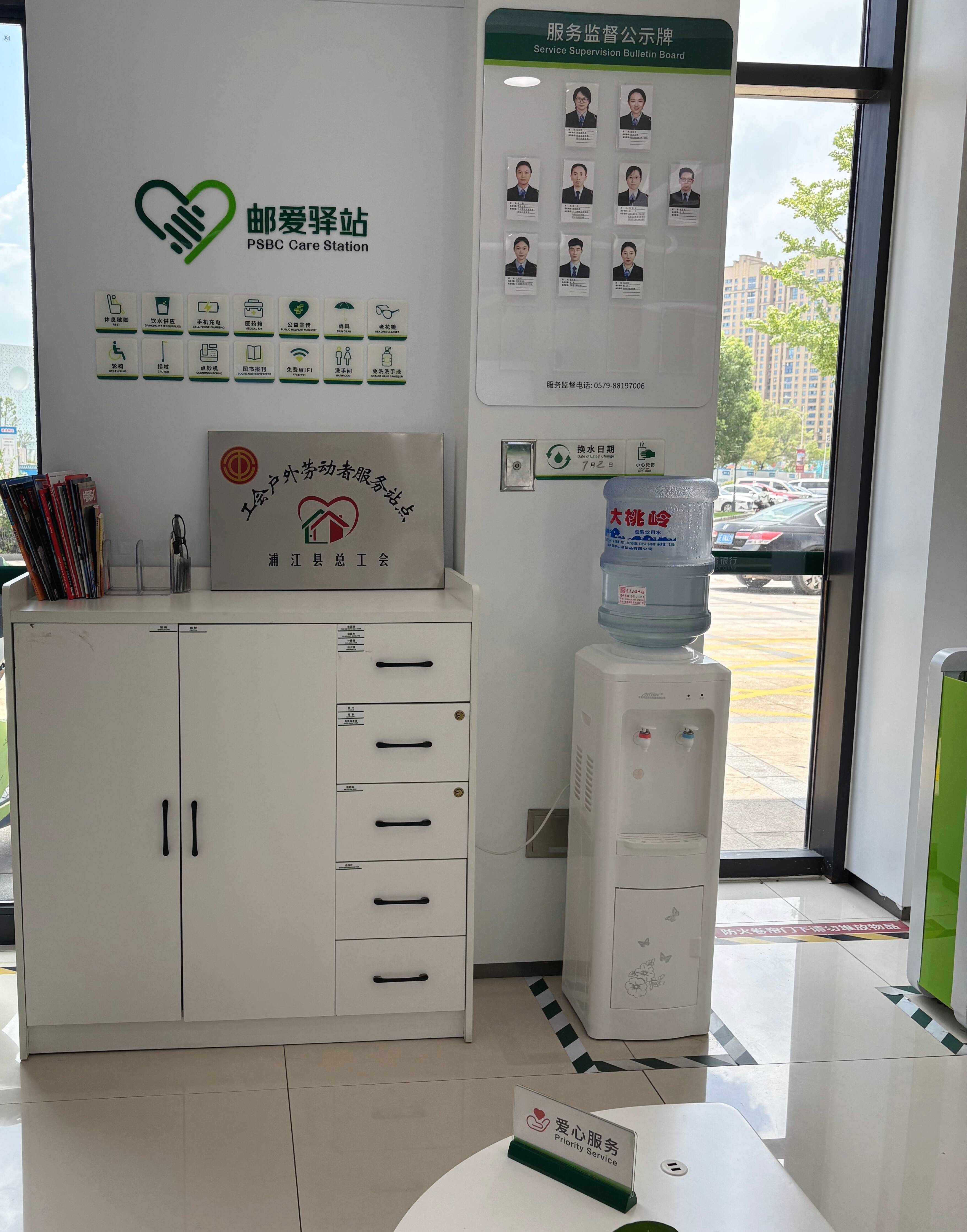 据了解,邮储银行浦江县支行营业部“邮爱驿站”配备了饮水机、便民医药箱、充电器、微波炉、休息座椅等基础服务设施,为户外劳动者提供了实实在在的便利。网点人员均接受过应急救护培训,具备处理基础健康问题的能力,为突发状况提供有力支持。驿站坚持执行“一看二问三助”服务流程,确保响应规范迅速。同时,服务内容也随季节变化而体现特色关怀:夏季免费供应凉茶,冬季备有暖心的姜茶,并设置了“爱心雨伞”借用服务,于细微处见真情。网点还定期邀请环卫工人等户外劳动者参加网点举办的健康知识讲座、节日慰问等活动,致力于建立长效的关怀机制。