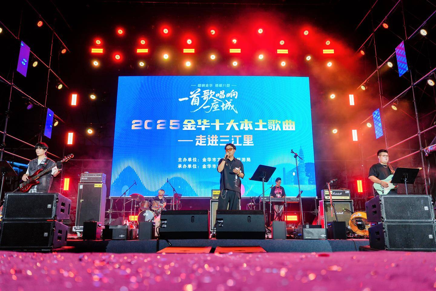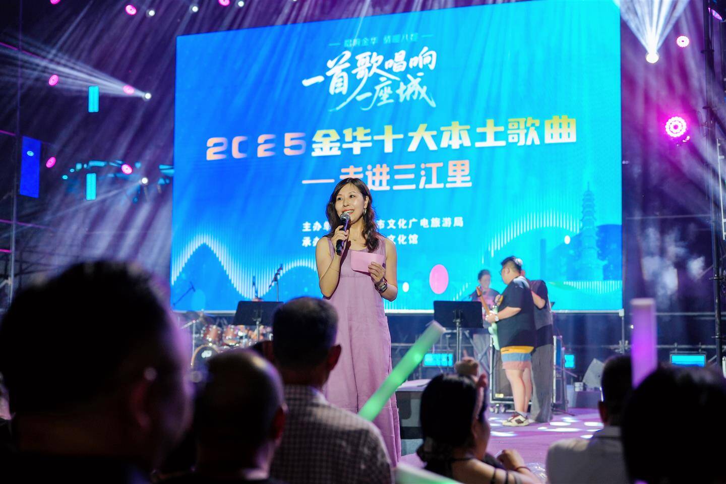 今晚7时,由市文化广电旅游局主办、市文化馆承办的“一首歌唱响一座城”线下展演亮相市区三江里音乐节舞台。《婺州夜书》《金华盈满了思念》《诗画金华》《易安》《我们的时光不慌不忙》等本土原创歌曲依次登场,现场互动积极、秩序良好,营造了热烈而温馨的节日氛围。