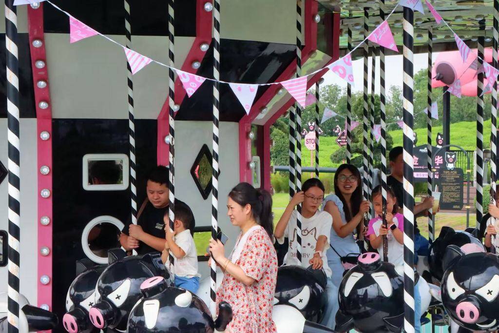 “长假期间,除了常规表演,我们还新推出小猪租赁服务,游客可以实现领养一只熊猫猪猪作为临时宠物的愿望。”熊猫猪猪牧场运营总监高丽清介绍,本次“庆国庆 看国猪”主题活动,旨在通过丰富内容让各地游客感受金华两头乌文化,愉快享受“双节”假期。此外,牧场还全新推出“小希腊爱情茶海”打卡地。改造后的茶园铺满爱情主题元素,新打造10余个特色景观点位,当爱琴海风格建筑与茶海绿意相映成趣,众多情侣和家庭纷纷在此驻足留影,定格一幕幕美好瞬间。国庆前三天,熊猫猪猪就涌进超过3万人次的游客,仅门票收入一项就超过180万元。