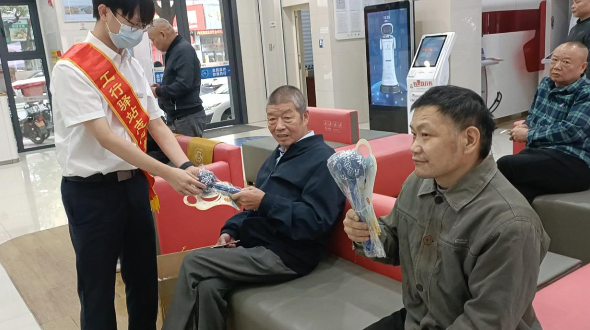 活动当天,工行金华兰溪站前支行的员工精心准备了艾草养生锤与茱萸桂花香囊,为到店的老年客户送上节日的祝福。艾草养生锤,轻轻敲打间,舒缓着身体的疲惫;茱萸桂花养生香囊,散发着淡雅的香气,寓意着健康与平安。老人们接过这份充满心意的礼物,脸上洋溢着幸福的笑容,纷纷表示感受到了工行的关怀与温暖。