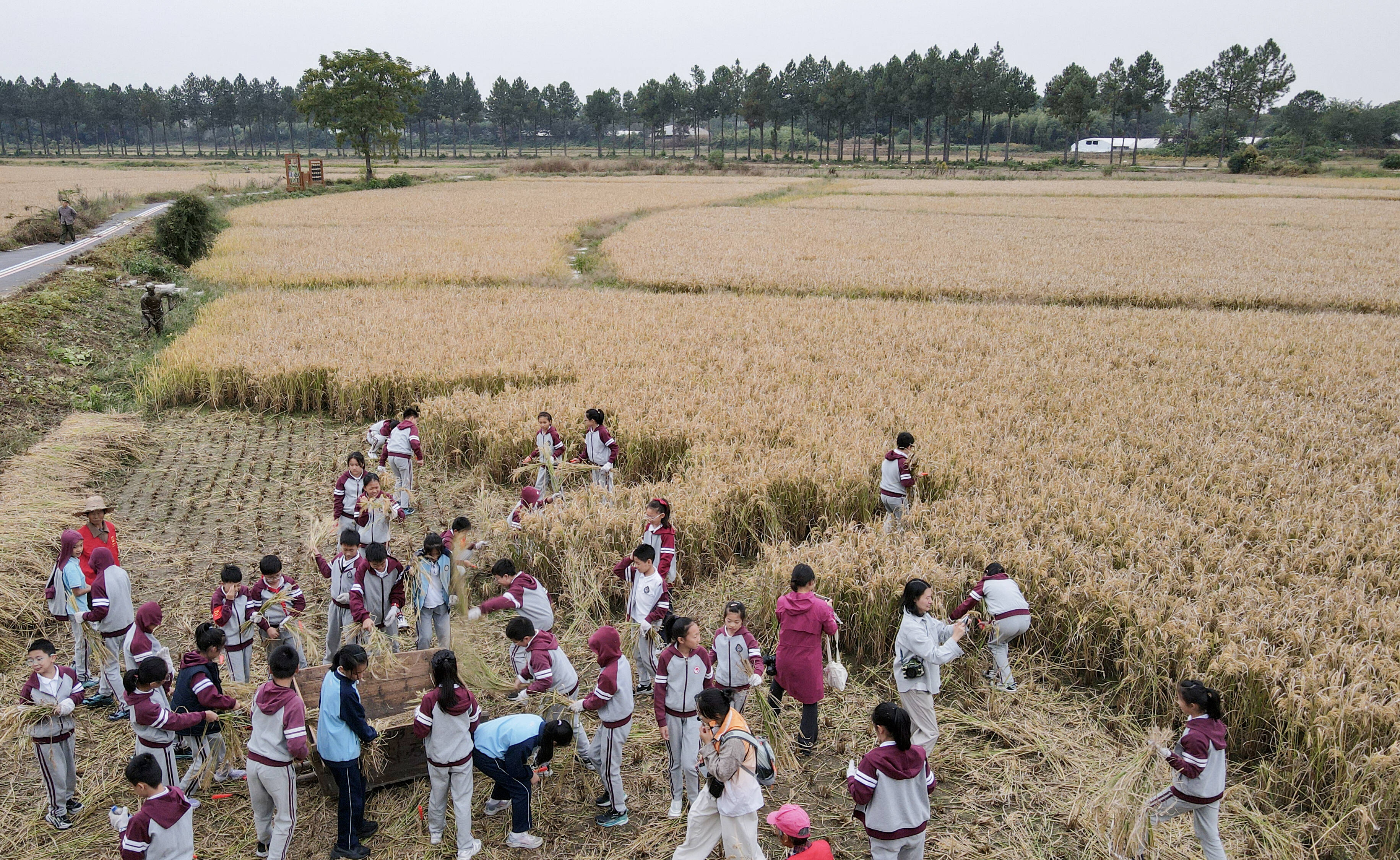 秋意正浓,乡村游热度不减。11月3日,金华开发区汤溪镇派溪童村共富基地,游客举行拔河比赛。金华开发区万亩稻田不仅带来丰收的喜悦,也催生出融合田园风光与休闲体验的消费新场景,游客们在田间拍照打卡、品咖啡、赏美景。