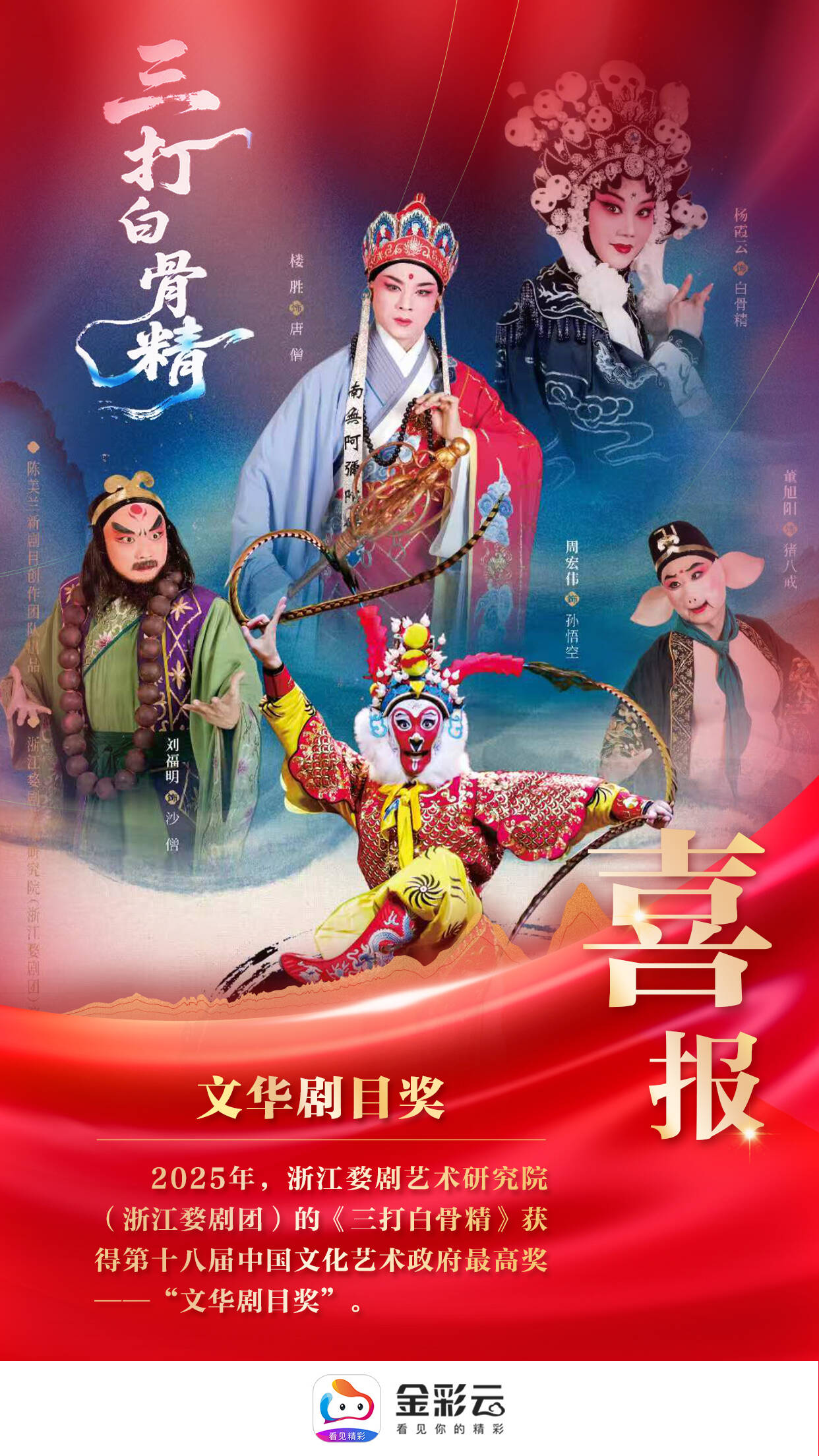 2025年,浙江婺剧艺术研究院(浙江婺剧团)的《三打白骨精》获得第十八届中国文化艺术政府最高奖——“文华剧目奖”。