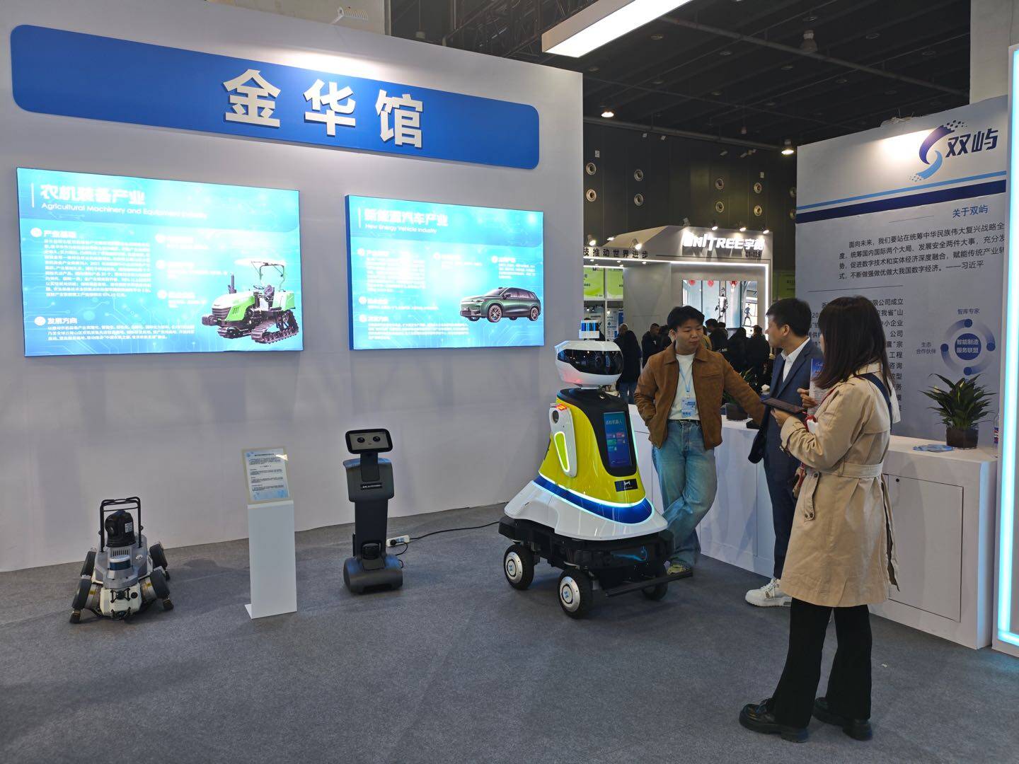 “金华馆”简约而不简单,全面展示金华装备制造业整体实力。现场,金华市经信局有关负责人介绍,装备制造业已发展成金华工业经济名副其实的“压舱石”与“增长引擎”,为区域经济高质量发展和产业升级提供坚实支撑。1—9月,金华装备制造业总产值达3026.9亿元,同比增长15.2%,其中高端装备制造业增势迅猛,实现增加值259.01亿元,同比增长23.2%,增速居全省前列。