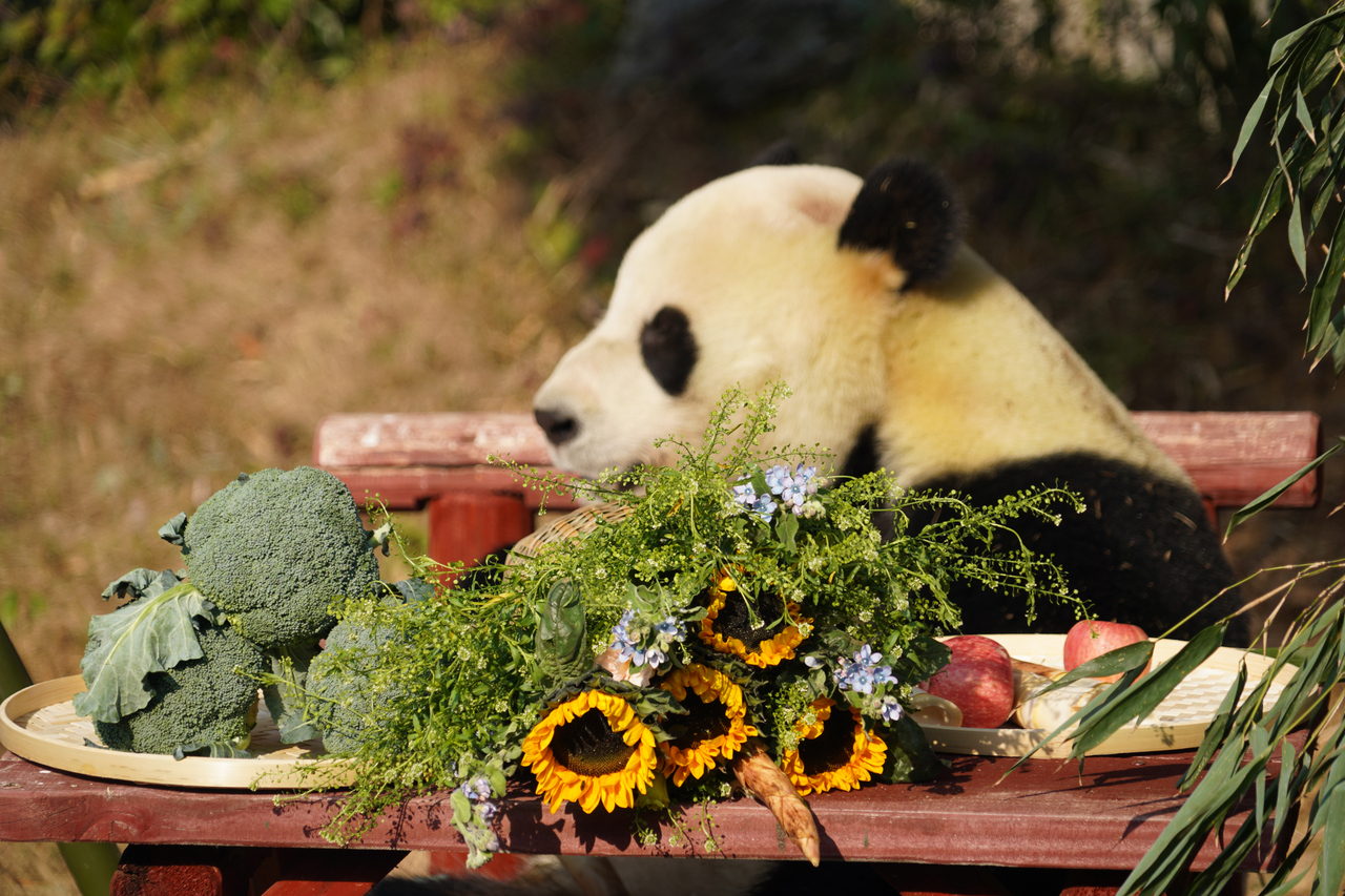 随着“壹壹”的到来,杭州野生动物世界的大熊猫数量达到两只,组成了有趣的“壹半壹半”组合。