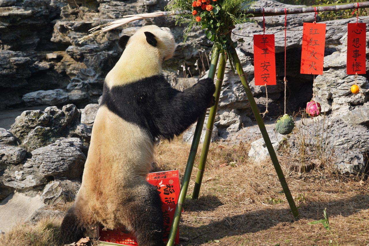 与园区现有的大熊猫“半半”相比,“壹壹”的性格更像“糙汉”。它活泼好动、不怕生,对一切事物充满好奇且敢于尝试。