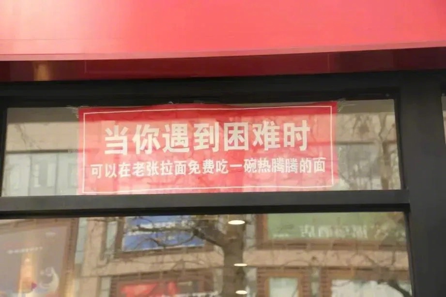 “老张拉面”因多年坚持为困难人士提供免费餐食受到关注。写有“遇到困难可免费吃面”的告示,不仅温暖了许多身处困境的人,更引来了顾客们自发“存面”助人。这样充满默契的爱心流转,说明了一个朴素却深刻的道理:社会的温暖,常常源于许多普通人触手可及的善意选择与接力。