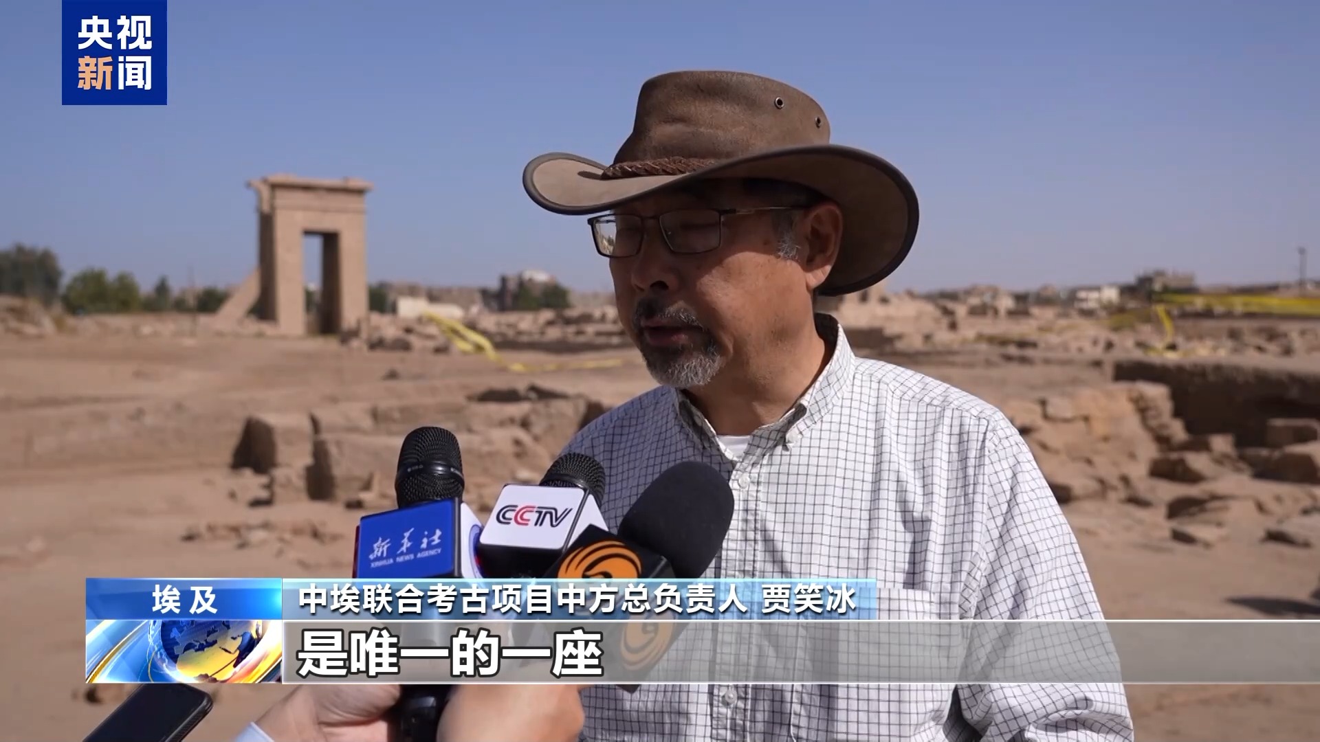 中埃联合考古项目中方总负责人 贾笑冰:这是填补埃及学、埃及(考古学)历史空白的发现,它不仅仅是发现了第二座圣湖,也是迄今为止在埃及考古学的历史上,是唯一的一座经过系统科学发掘的一座圣湖。