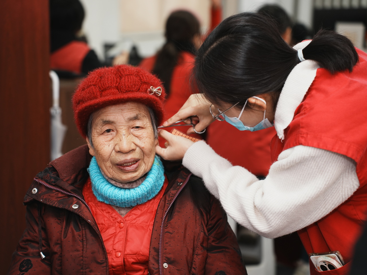 “这项服务真方便,解决了我们的后顾之忧。”许多老人家属现场扫码关注,给服务小分队点赞。