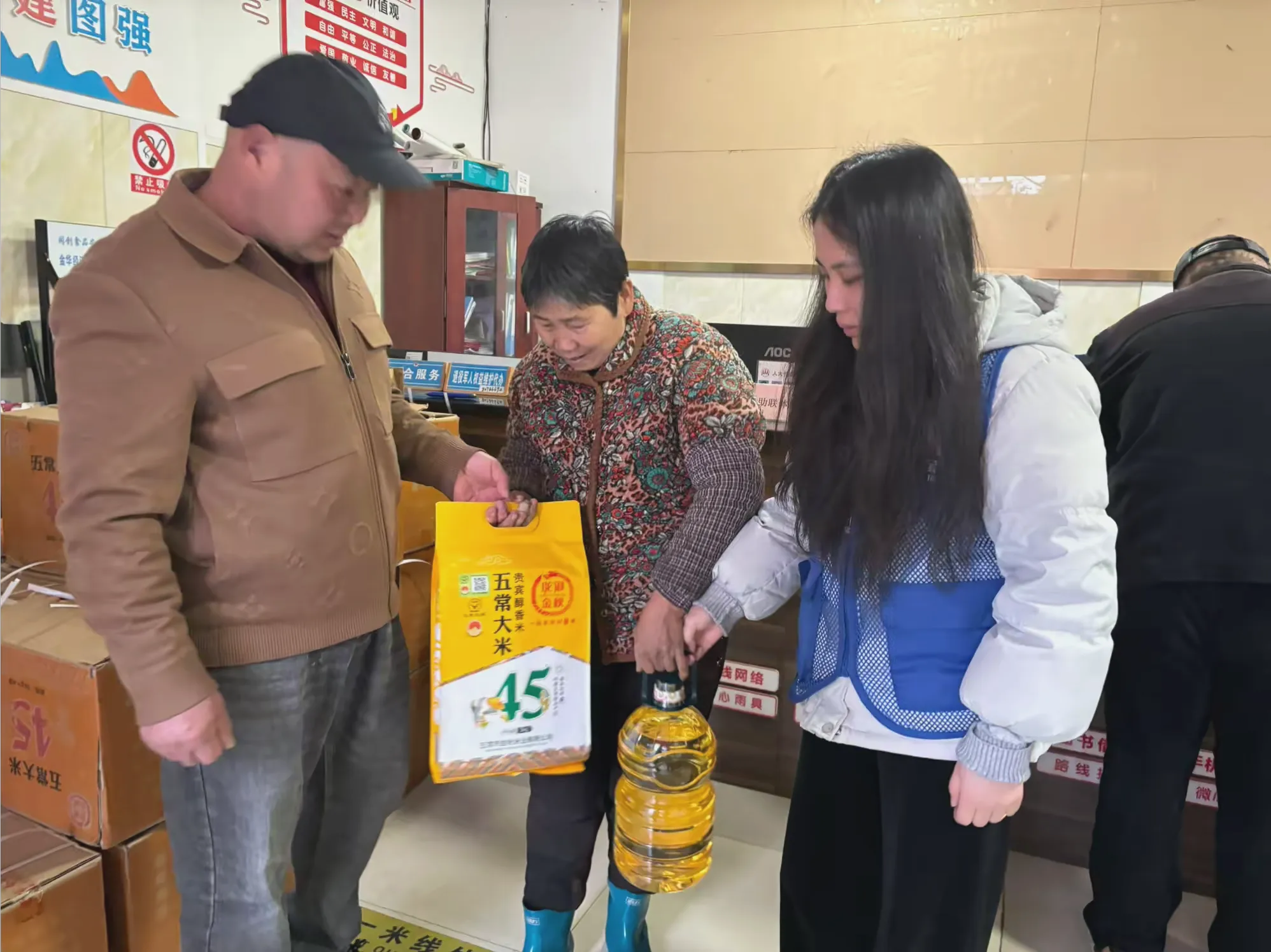 浙江明园科技智能有限公司志愿者自筹资金,准备了米和油等慰问物资,逐一发放至退休老人手中。志愿者与老人亲切交谈,详细了解老人的身体状况和生活情况,叮嘱老人注意冬季保暖、保重身体,倾听老人的心声与需求,现场氛围温馨融洽。