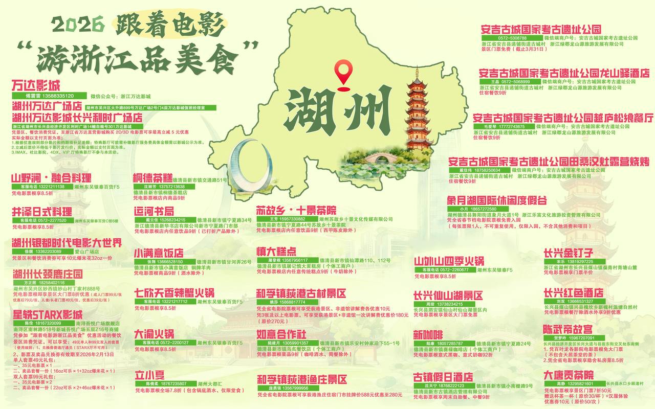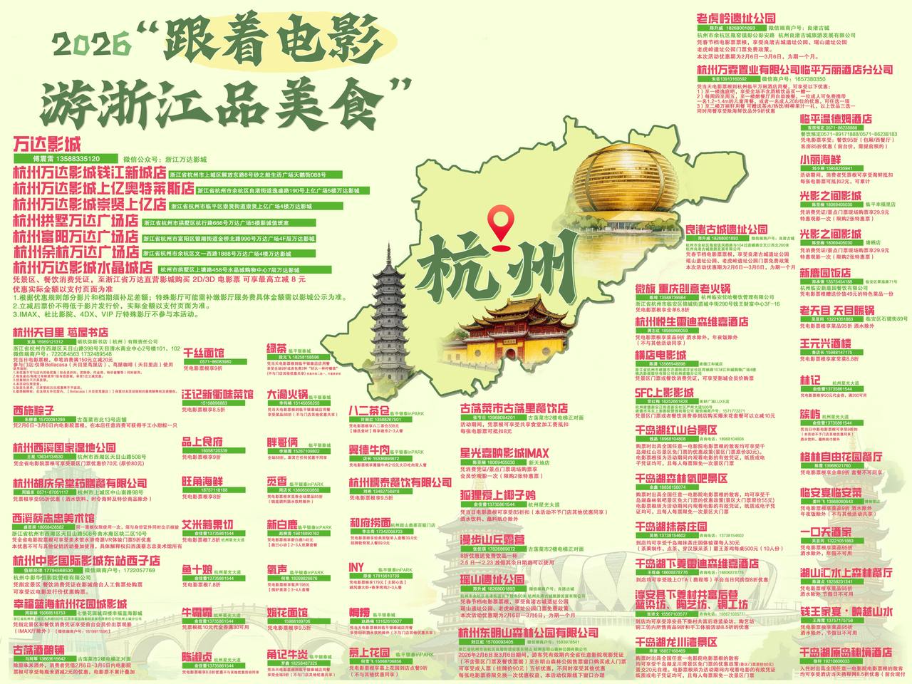 2026年浙江省将进一步加大力度,推出一系列“跟着电影游浙江品美食”优惠政策。