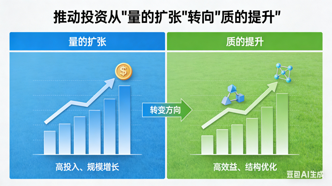 投资是稳定经济增长、增强发展后劲的关键抓手,是推动高质量发展、构筑未来竞争优势的重要支撑。党的二十届四中全会《建议》提出“保持投资合理增长,提高投资效益”,中央经济工作会议明确“推动投资止跌回稳”“有效激发民间投资活力”,日前召开的国务院常务会议专门研究促进有效投资政策措施。顶层设计频频落子,核心指向一个“效”字——推动投资从“量的扩张”转向“质的提升”,让每一分投入都精准有力,转化为实实在在的发展动能和民生福祉。