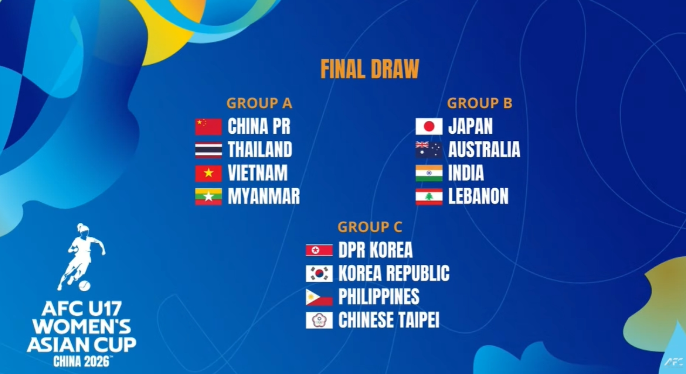北京时间2月12日,2026年U17亚洲杯小组赛抽签仪式在马来西亚吉隆坡的亚足联总部举行。男足、女足分组抽签情况如下: