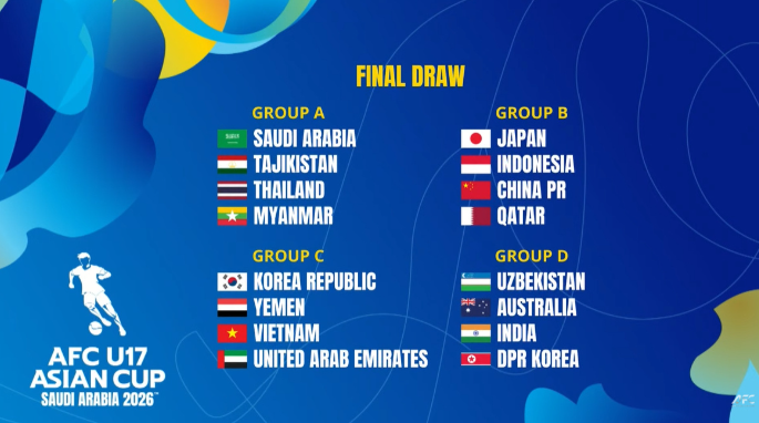 2026年U17亚洲杯将于5月7日至5月24日在沙特阿拉伯举行,小组前两名可直接晋级八强,并获得U17世界杯参赛资格。