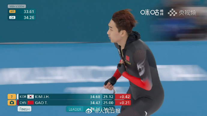 当地时间2月14日下午,2026年米兰冬奥会速度滑冰男子500米比赛在米兰速滑馆举行。上届冠军、中国队选手高亭宇以34秒47的成绩最终获得第七名。这是高亭宇第三次参加冬奥会,4年前的北京冬奥会上,他在该项目中实现中国男子速滑冬奥会金牌零的突破。