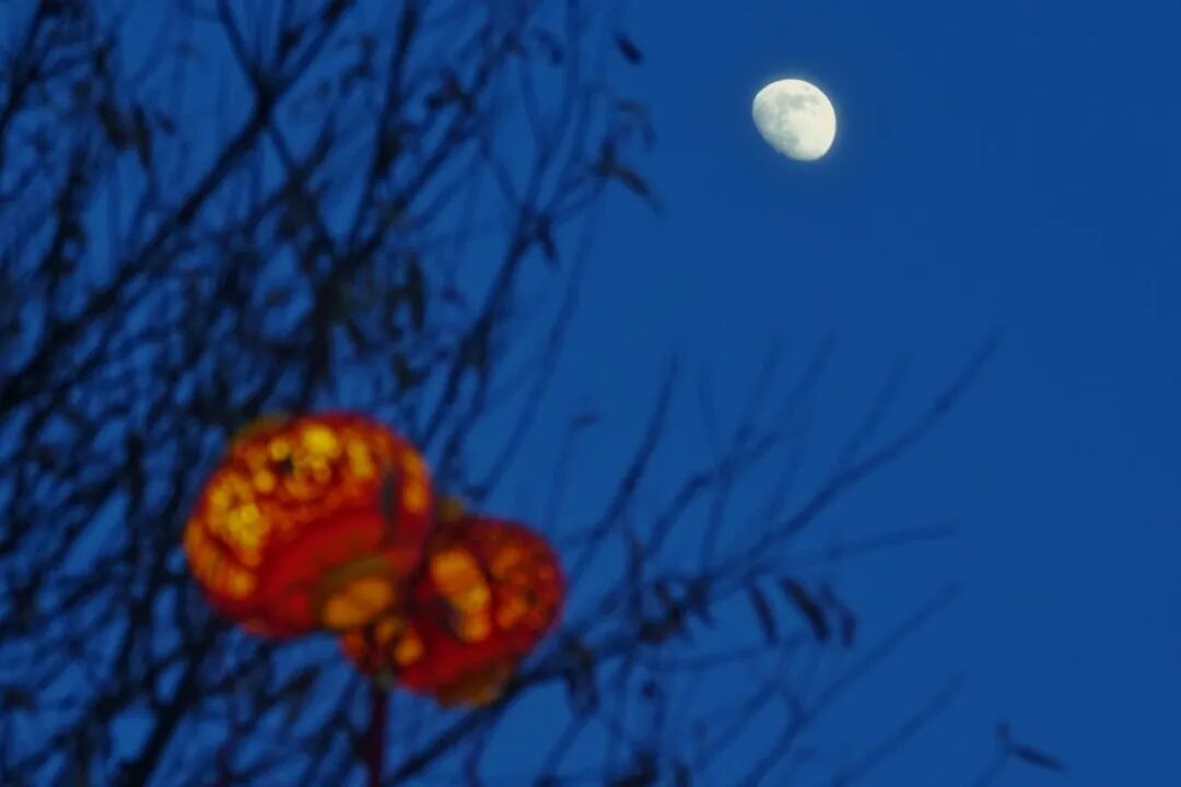 灯笼与月亮相映成趣 图源:新华社