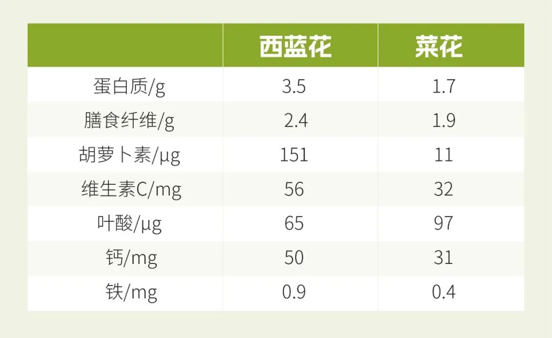 西蓝花的蛋白质含量堪比纯牛奶,每100g含3.5g蛋白质,属于少有的高蛋白蔬菜,是非常不错的植物蛋白来源。它的叶酸含量也十分可观,叶酸是备孕期和孕期女性的“刚需营养素”,对于预防胎儿神经管畸形具有重要作用。