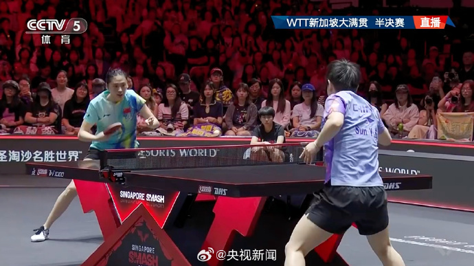 WTT新加坡大满贯女单半决赛,孙颖莎4-1战胜陈熠,晋级女单决赛,具体比分为11-2、14-12、11-7、5-11、12-10。