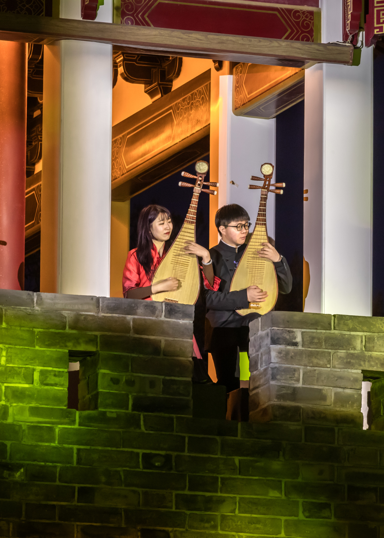 经典影视歌曲联奏成为本场音乐会的一大亮点,让观众在熟悉的旋律中重温时代记忆。《世间始终你好》的江湖豪情、《女儿情》的婉转愁绪、《沧海一声笑》的洒脱豪迈,经中阮、箫、二胡等民乐重新演绎,柔情与豪气交织,勾起全场共鸣。而《婺江欢歌》《花好月圆》等曲目,更是将婺州的地域风情与元宵的团圆意韵完美融合,三江六岸的喜悦与人间团圆的美好,皆在乐声中娓娓道来。