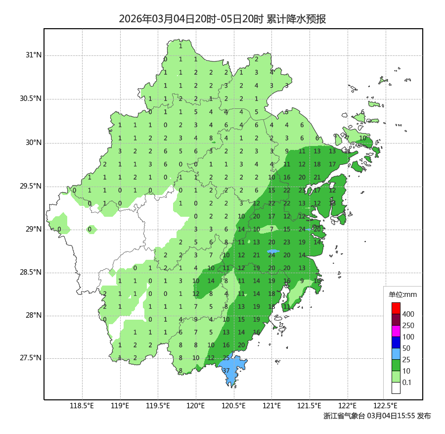 昨天(3月4日)夜里开始,浙江又迎来一次明显的降水过程。今天,全省都会被小雨覆盖,其中沿海地区的雨是最明显的,部分中雨,局部可达大雨的量级。请大家务必提前做好准备,错峰出行。雨天视线不佳,行车注意谨慎慢行。