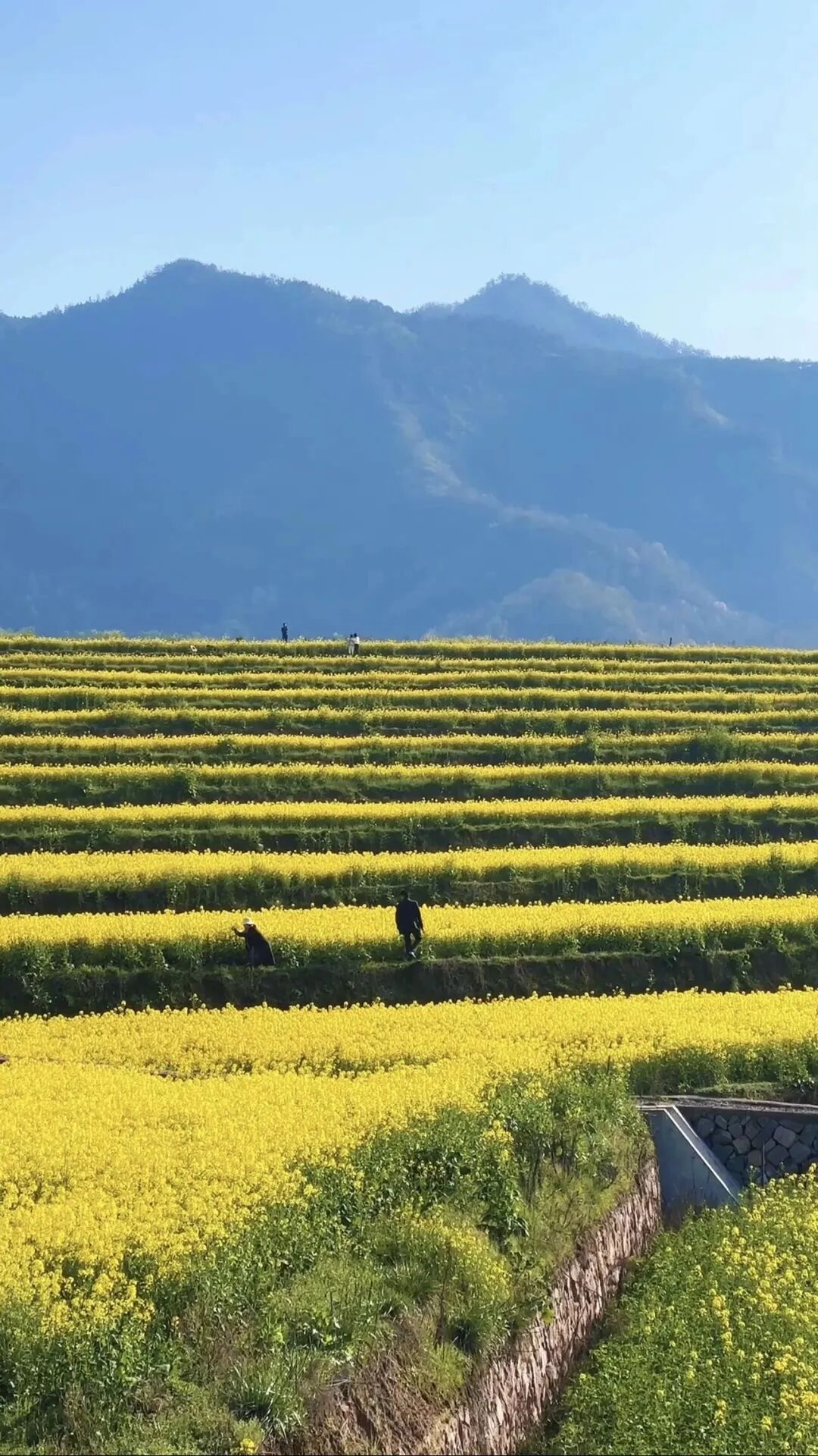 兰溪市西塘下村800亩油菜花梯田正盛放,沿着田埂漫步,观赏层层叠叠的金色一路延伸,去旁边的牛肉摊上喝碗热乎的牛杂汤,感受春日的浪漫。