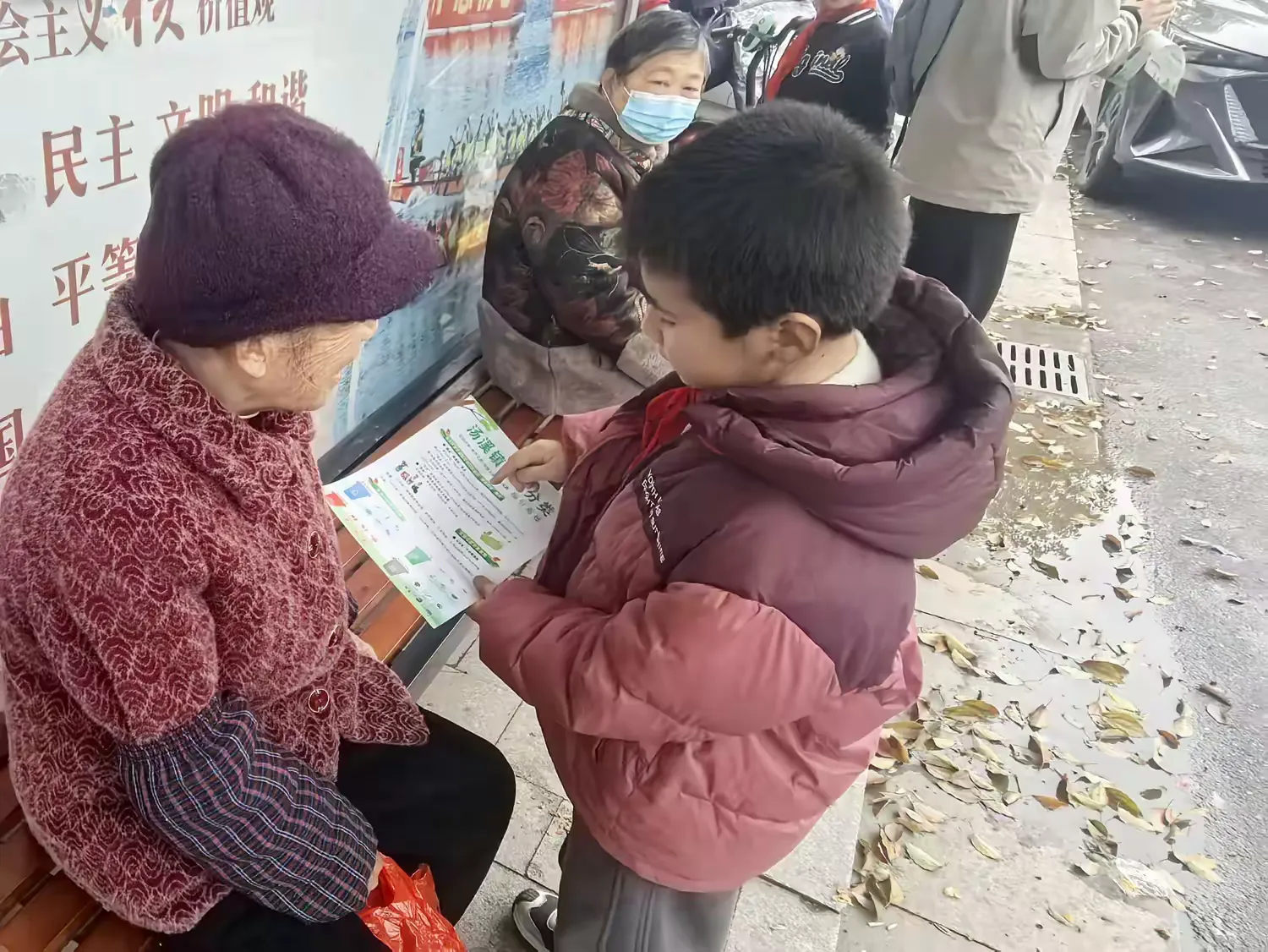 随后,孩子们化身“环保小宣传员”,带着垃圾分类宣传手册走上街头、走进楼栋,向社区居民耐心讲解分类知识与投放时间,传递绿色生活理念。面对长辈的疑问,孩子们细致解答,用童真与热情带动更多居民参与垃圾分类行动。