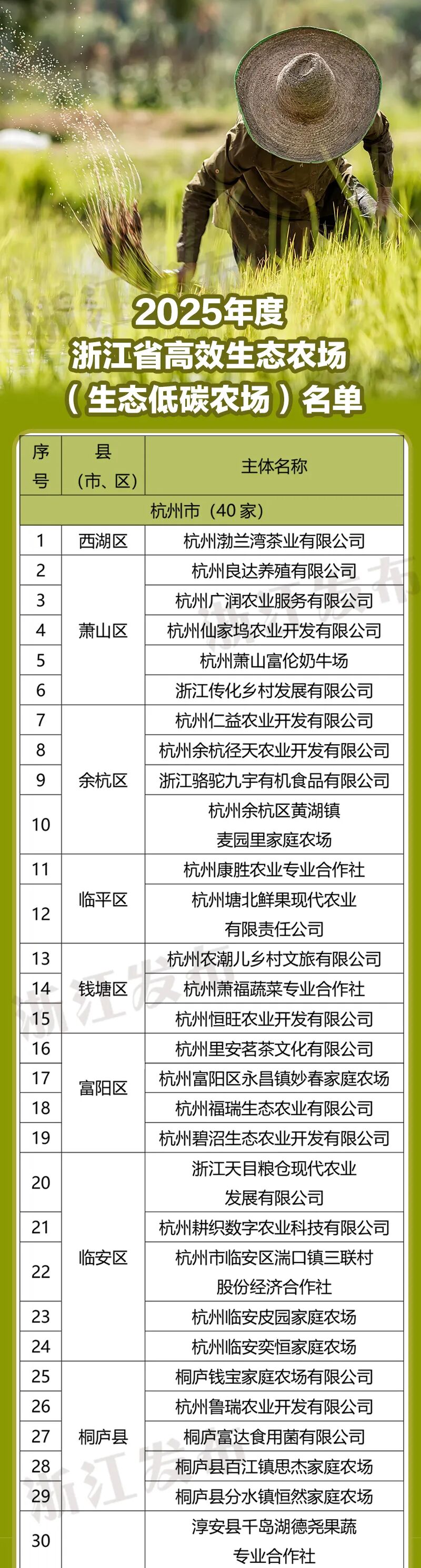 近日,省农业农村厅公布2025年度浙江省高效生态农场(生态低碳农场)名单,金华实大农业科技有限公司等30家榜上有名。