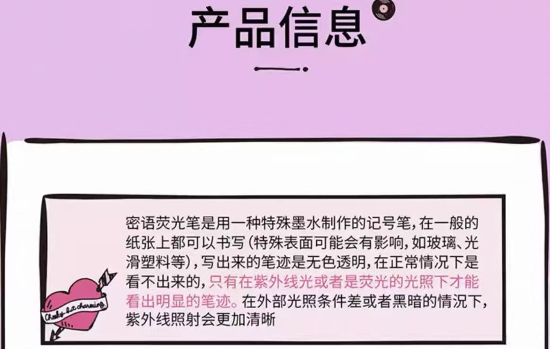 某购物网站紫外线荧光笔商品网页上的温馨提醒 截图