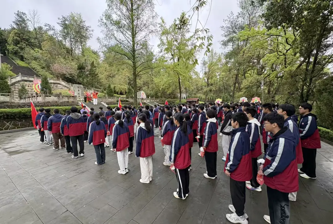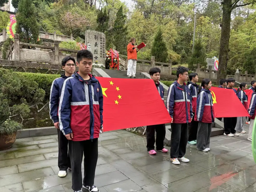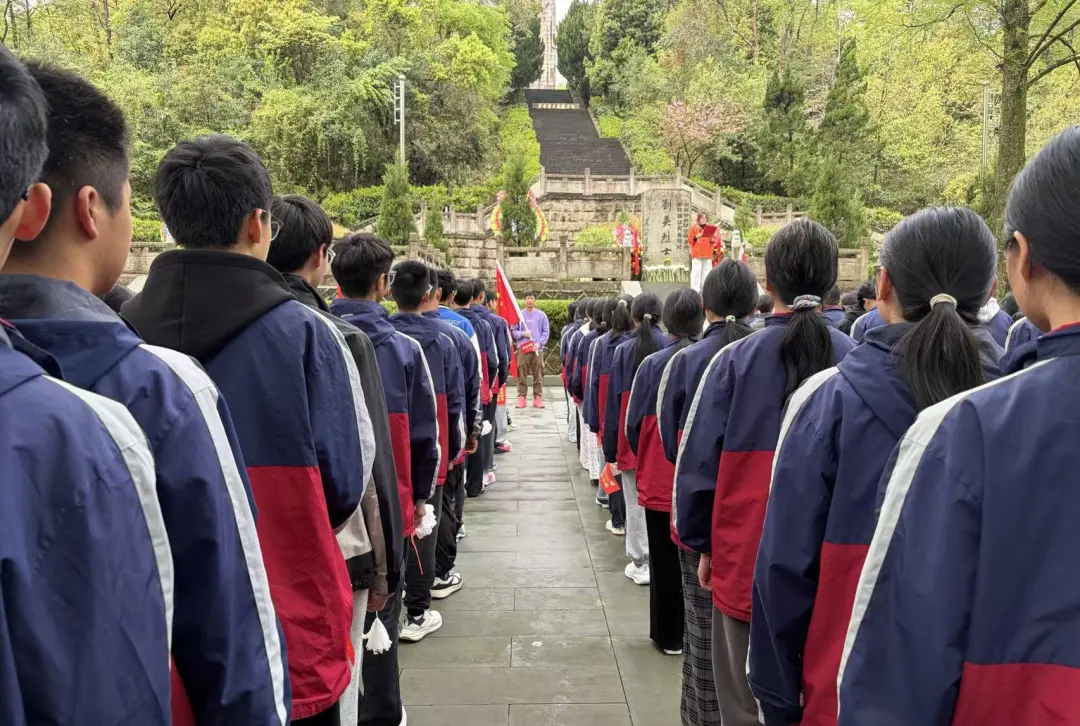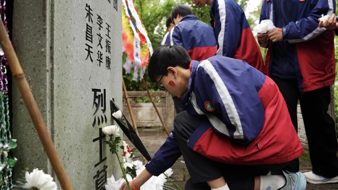 研学首站,学子们奔赴刘英烈士墓,在苍松翠柏间缅怀革命先烈。青山埋忠骨,英魂永留存,刘英烈士追求真理、无私奉献的革命精神,在学子心中深深扎根。祭奠仪式上,每班两名代表手捧花圈,步履沉重而坚定地走向烈士墓,放下花圈与自制花朵,鞠躬致哀,以最朴素的方式寄托哀思与敬仰。