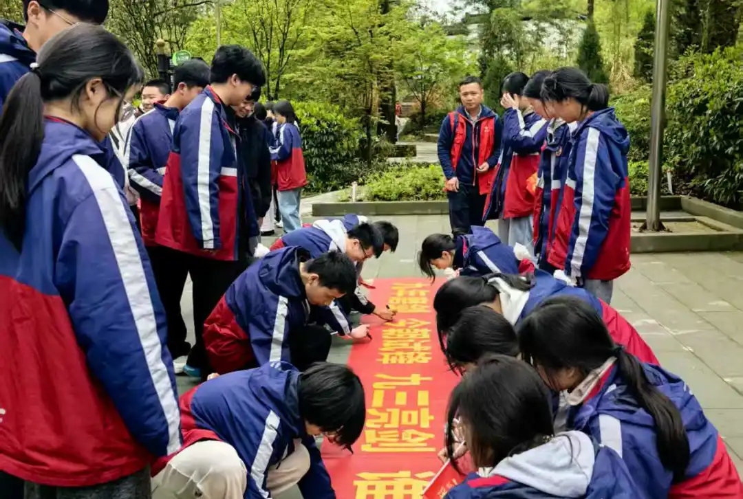 最后,全体学子齐声呐喊誓师口号,字字铿锵震彻陵园,随后在班级横幅上签下目标与誓言,定格下全力以赴的青春姿态。