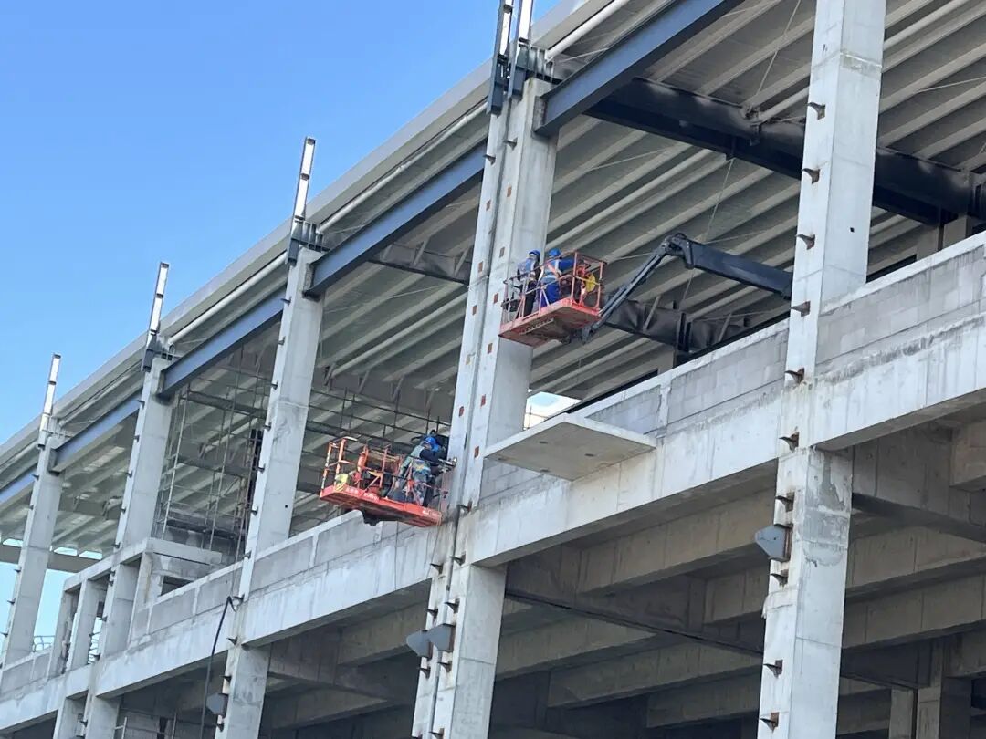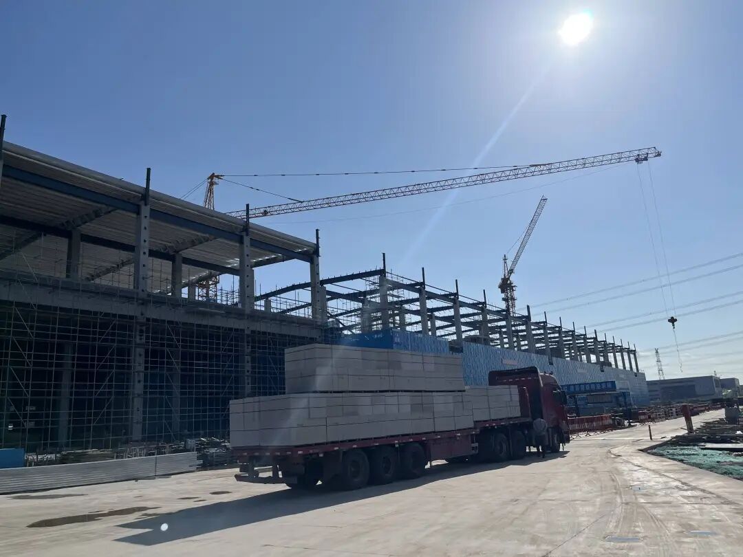 与此同时,保税仓库2号、3号、4号已全面封顶,钢结构工程完成超90%,砌体、粉刷及机电安装进度均超八成,即将转入设备安装阶段;海关监管区单体建筑主体全部结顶,室内砌筑完成95%,门式起重机轨道基础完工,即将全面进入装饰装修阶段;集装箱箱管中心主体建筑全部结顶,室内外抹灰完工,室外雨污水管道已全线贯通。
