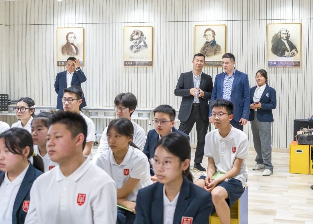 谢尔盖先生一行实地参观校园,深入了解君华学校的课程设置和教学模式,对学校教育理念、艺术教育成果、优美校园环境和先进教学设施给予高度评价。